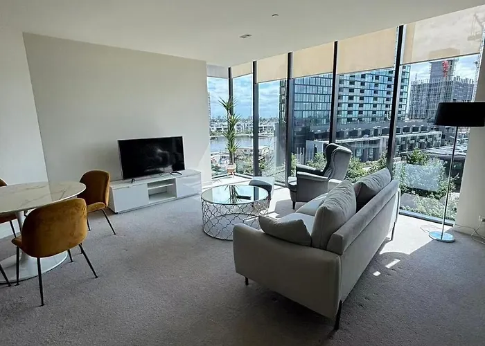 Luxurious Waterfront Living In Docklands Near Marvel Stadium appartement ligt op slechts 10 minuten lopen van Melbourne stadscentrum.